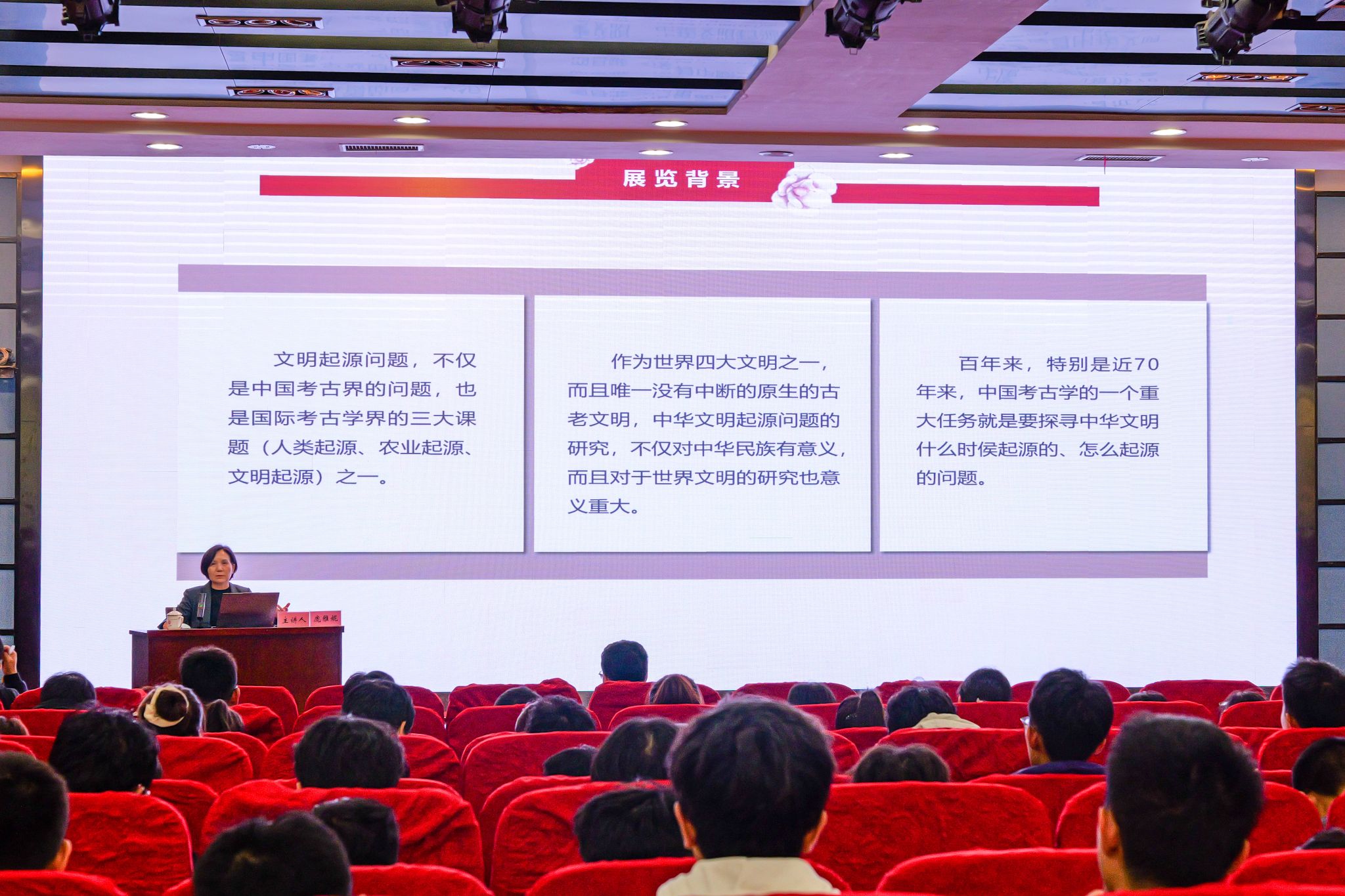 10月20日,学校在北校区北辰楼会议中心二层报告厅举办名家讲座进校园——“礼敬中华优秀传统文化”专题讲座。陕西历史博物馆党委书记、馆长庞雅妮受邀担任主讲人,校党委副书记李文雄、校团委干部和各校级团学组织、学生社团学生代表500余人参加讲座。