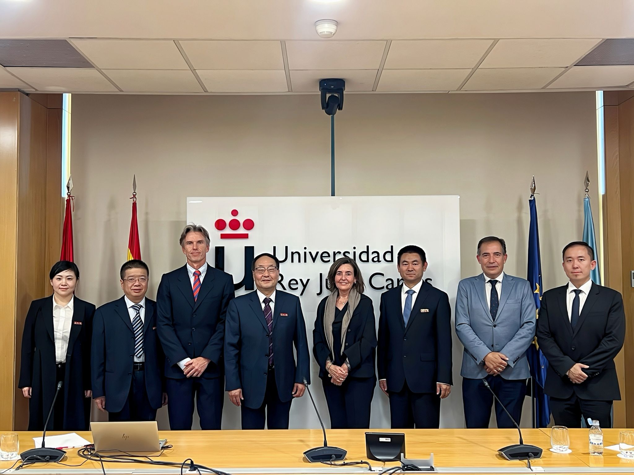 在西班牙胡安卡洛斯国王大学访问期间,访问团会见了国际关系副校长Ana Felicitas Muñoz Pérez及科学研究副校长Fernando Martínez Castillejo。双方就深化校际合作进行了广泛交流,会谈拟定续签两校校际合作协议,并商议新增签署本科“2+2”双学位项目与“3+1+1”本硕连读项目两项学生联合培养项目协议。双方一致表示,应在既有良好合作基础上,进一步扩大本科及硕士层次学生联合培养规模,深化科研合作,推动两校合作持续向更高水平发展。