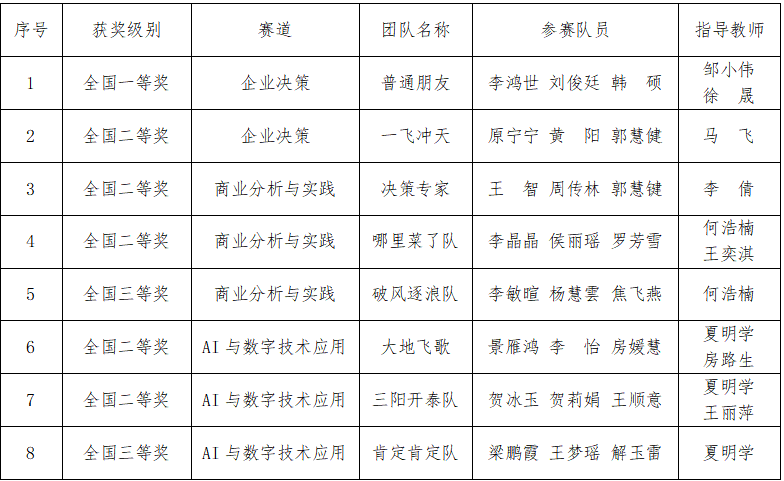 经济与管理学院依托专业学位教育中心和工商管理系骨干力量在往届赛事组织经验的基础上,针对本届比赛新设赛道的新情况,通过师资培训、竞赛宣传、赛前模拟培训、校赛选拔以及强化指导,最终选拔出30支队伍参加全部四个赛道的国赛,最终进入决赛阶段的8支队伍与来自全国150所高校的411支队伍同台竞技并全部获奖。