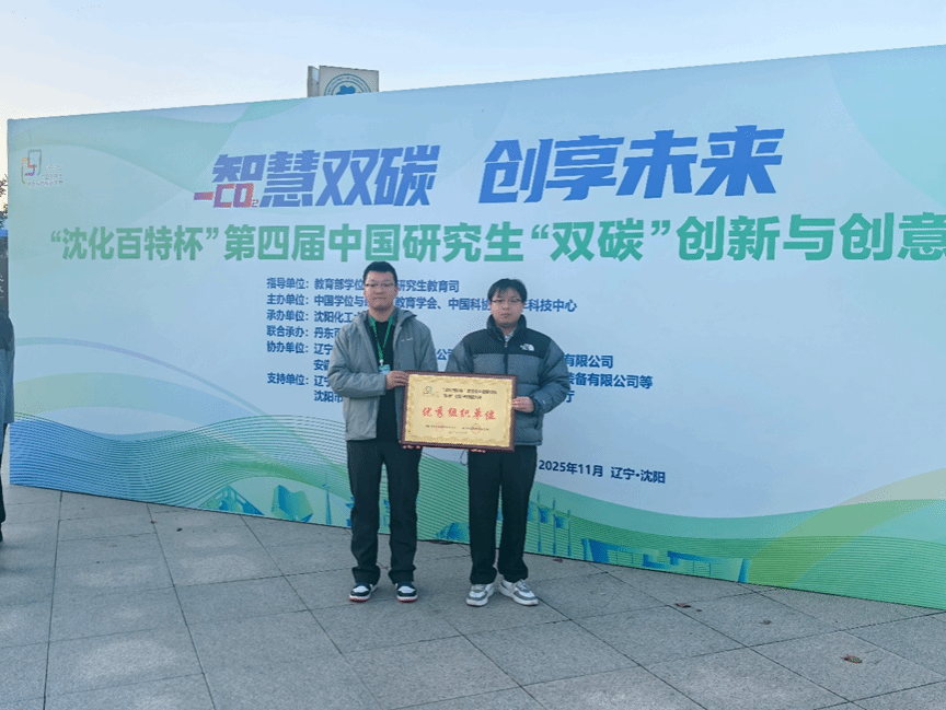 近日,第四届中国研究生“双碳”创新与创意大赛全国总决赛在沈阳化工大学闭幕,我校获全国一等奖1项、三等奖6项,建筑工程学院孟庆龙和赵凡两位老师获得优秀指导教师奖,我校荣获优秀组织奖。