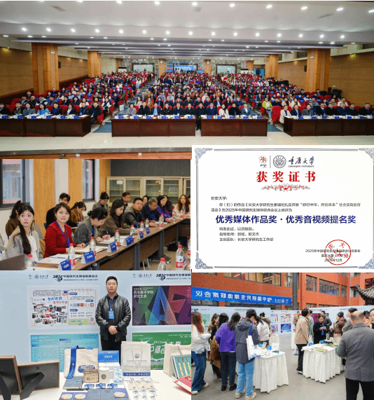 12月8日至9日,由教育部学位与研究生教育发展中心指导、重庆大学主办的2025年中国研究生媒体联席会议召开。长安大学“长大研途”微信公众号作品《长安大学研究生兼辅班扎实开展“研行中华,燃创未来”社会实践教育活动》荣获“2025年中国研究生媒体联席会议优秀媒体作品奖·优秀音视频提名奖”。研究生工作办公室欧文杰在“数智时代研究生媒体的思想引领与价值塑造”分论坛参与研讨,与多所高校代表就研究生宣讲团的培育与传承等问题进行了深入交流。此外,在文创展示环节中,向与会各高校积极呈现了“长大研途”新媒体品牌的建设成果,并展示了系列文创产品风采。