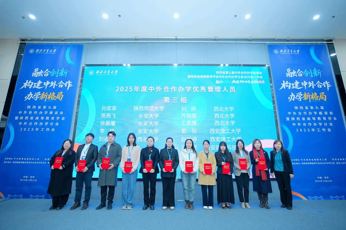 12月12日,由陕西省教育厅主办、陕西省高等教育学会中外合作办学分会和西北工业大学承办的陕西省第九届中外合作办学座谈会暨陕西省高等教育学会中外合作办学分会2025年工作会,在西北工业大学长安校区召开。我校国际合作与交流处、国际教育学院、长安都柏林国际交通学院、信息工程学院相关负责人参加大会。