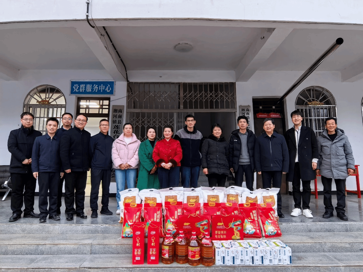 在湘河镇,黎开谊代表学校看望了困难群众和莲花台村两委班子成员,送上了新春慰问。