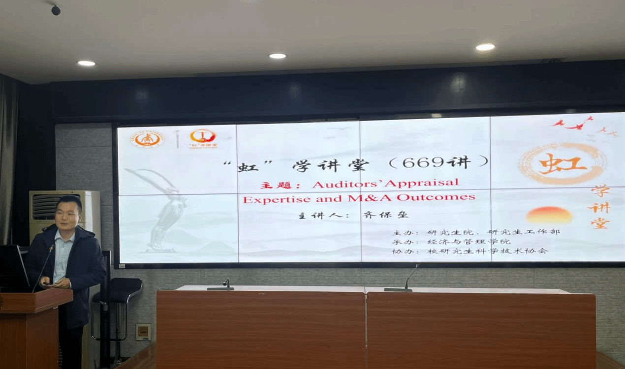 10月29日下午,由研究生院、研究生工作部主办,经济与管理学院承办,校研究生科学技术协会协办的“虹”学讲堂第669讲在南校区北院经济与管理学院407会议室举行。西安交通大学齐保垒教授作题为“Auditors' Appraisal Expertise and M&A Outcomes”的报告,相关学院共150余名师生参加讲座。