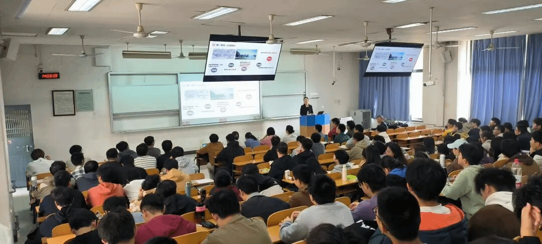 刘冠芳以“轨道交通牵引系统自主化创新实践探索”为报告主题,从轨道交通装备的技术演化过程与趋势、行业现状与需求、自主化创新技术三个方面,介绍了轨道交通装备自主探索—引进消化吸收—自主创新—深化创新的发展过程。她结合行业技术发展趋势,阐述了中车永济电机有限公司牵引系统在绿色高效、智能可靠以及自主可控方面的关键技术突破及成果转化情况。讲座中,作为我校校友的刘冠芳还贴心的准备了一些小礼品,采取互动问答方式,与同学们积极展开互动交流,取得了很好的效果。