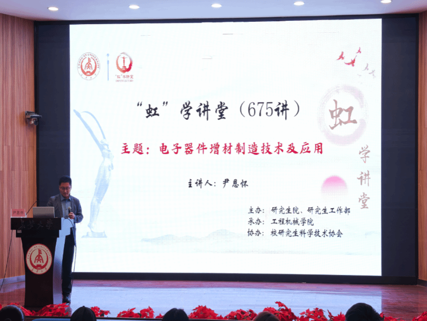 11月9日下午,由研究生院、研究生工作部主办,工程机械学院承办,校研究生科学技术协会协办的“虹”学讲堂第675讲在南校区东院伯声报告厅举行。中国电子科技集团公司第二十研究所尹恩怀高级工程师作题为“电子器件增材制造技术及应用”的报告,工程机械学院刘清涛老师主持报告会,相关学院共130余名师生参加讲座。