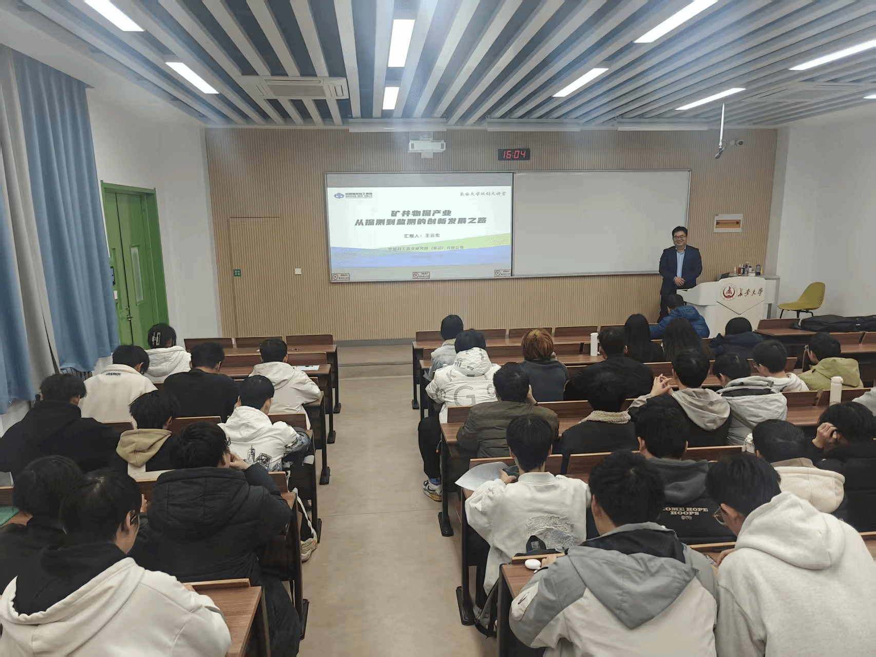 11月20日下午,长安大学双创大讲堂第40讲在北校区修远教学楼2区WX2210教室举行。本次讲座由教务处、创新创业学院联合地测学院共同主办,以“矿井物探产业从探测到监测的创新发展之路”为主题,特邀中煤科工西安研究院(集团)有限公司科技创新研究院副院长、《工矿自动化》杂志青年专家委员会委员王云宏担任主讲嘉宾。地测学院相关专业学生及校内其他对中国国际大学生创新大赛、大学生创新训练计划项目感兴趣的师生积极参与,现场学术氛围浓厚。