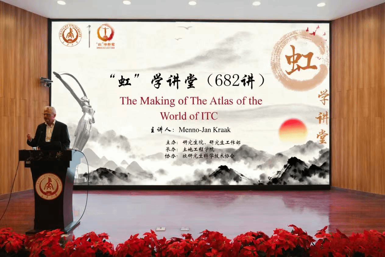 11月26日上午,由研究生院、研究生工作部主办,土地工程学院承办,校研究生科学技术协会协办的“虹”学讲堂第682讲在南校区东院伯声报告厅举行。荷兰特文特大学Menno-Jan Kraak教授作题为“The Making Of The Atlas Of The World Of ITC”的报告,土地工程学院李霞副教授主持报告会,相关学院共180余名师生参加讲座。