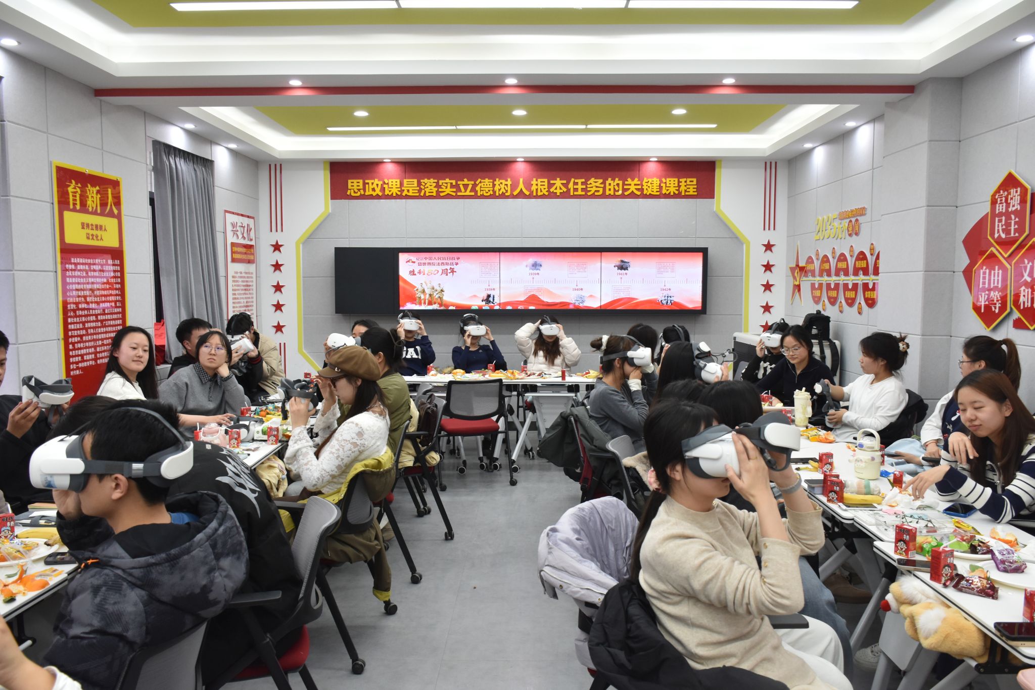 与会同学体验沉浸式虚拟课堂,“置身”新时代发展前沿,通过可感知、可互动的具象体验,增强了思政学习的代入感与获得感。同学们书写心愿便利贴,分享读研感悟与未来期许,将对成长的憧憬化为前行的动力,以文字定格初心与目标。