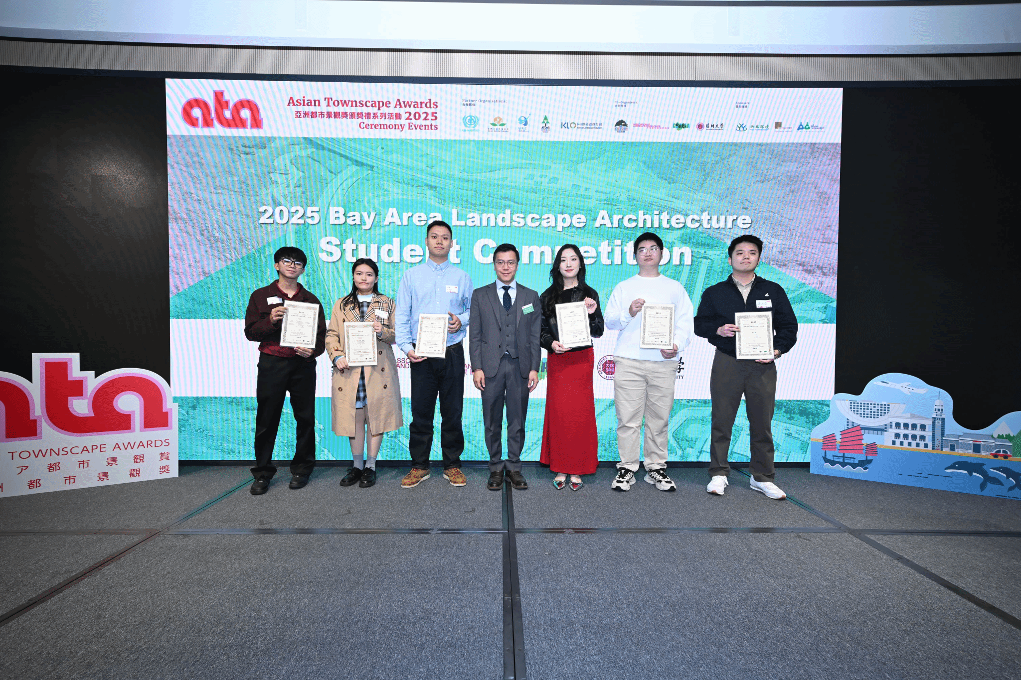 11月27日,由亚洲人居环境协会等联合主办,联合国人居署、中国风景园林学会等支持的2025国际湾区风景园林学生大奖赛颁奖典礼在中国香港举办,竞赛以“韧性・未来・风景园林的变革力量”为主题,全球48所院校百余件作品参赛。建筑学院风景园林系教师王迪指导的马浩嘉、师奇、刘智腾、李霁野、朱思妍本科生团队作品《河脉韧链·锈岸新织:泾渭灞三河流域滨水空间景观设计》荣获鼓励奖。该设计聚焦气候变化背景下的西安渭、灞、泾三河交汇区域,提出了融合雨洪管理、生态修复与空间活力的弹性景观策略,显示出应对复杂环境问题的前瞻性设计能力。