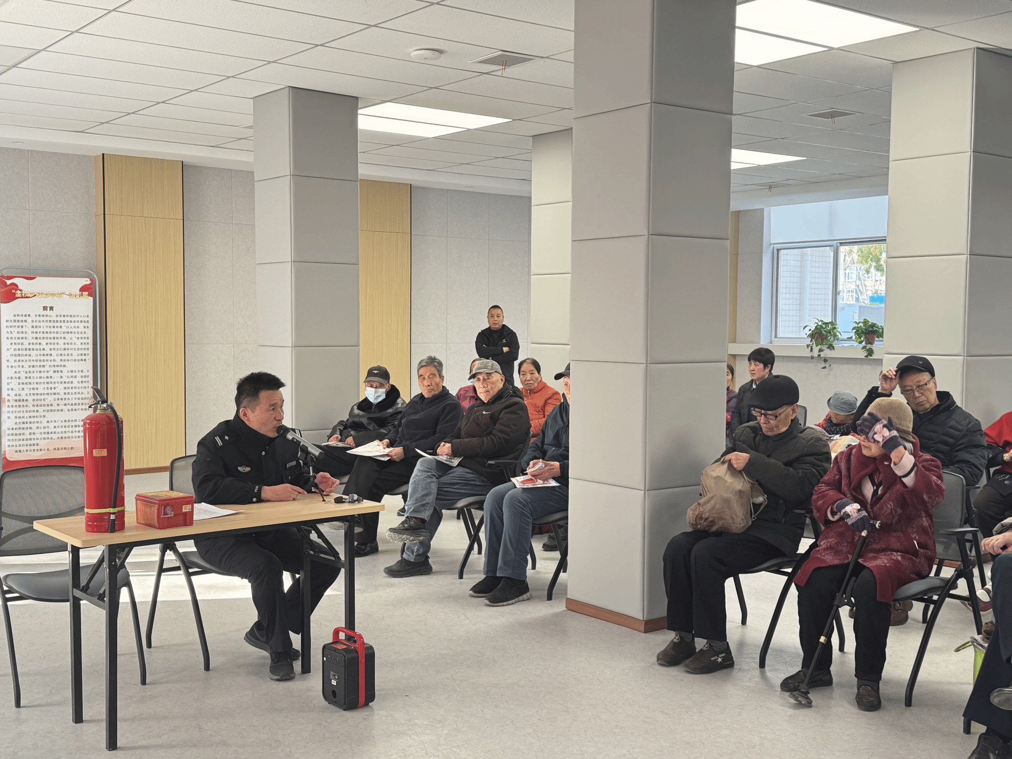 为切实守护老年群体生命财产安全,筑牢校园及社区消防安全防线,12月5日下午,保卫处(保卫工作部)联合离退休工作处、社区居委会,在南校区南院师生活动中心一楼大厅共同开展高龄老人消防安全宣教活动,小寨路派出所社区民警受邀参与指导,离退休职工及社区居民积极到场参与学习。