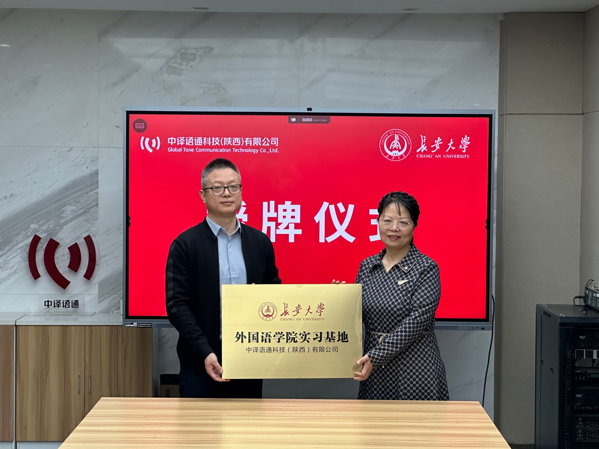 勾小群介绍了长安大学和外国语学院的相关情况,重点阐述了学院“外语+”复合型、国际化人才的培养定位与显著成效,双方围绕人才培养、实习就业、产学研融合等议题进行了深入而务实的探讨,共同签署了实习实践合作协议,勾小群为学生实习基地授牌。