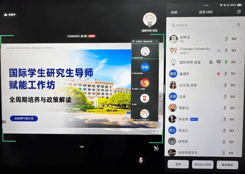 会上,国际学生招生办公室项目主管详细解读了2026-2027学年中国政府奖学金等项目政策,并与国际学生工作办公室、教学与培养办公室等负责人共同答疑,解决国际学生研究生指导教师关切问题,听取工作建议。