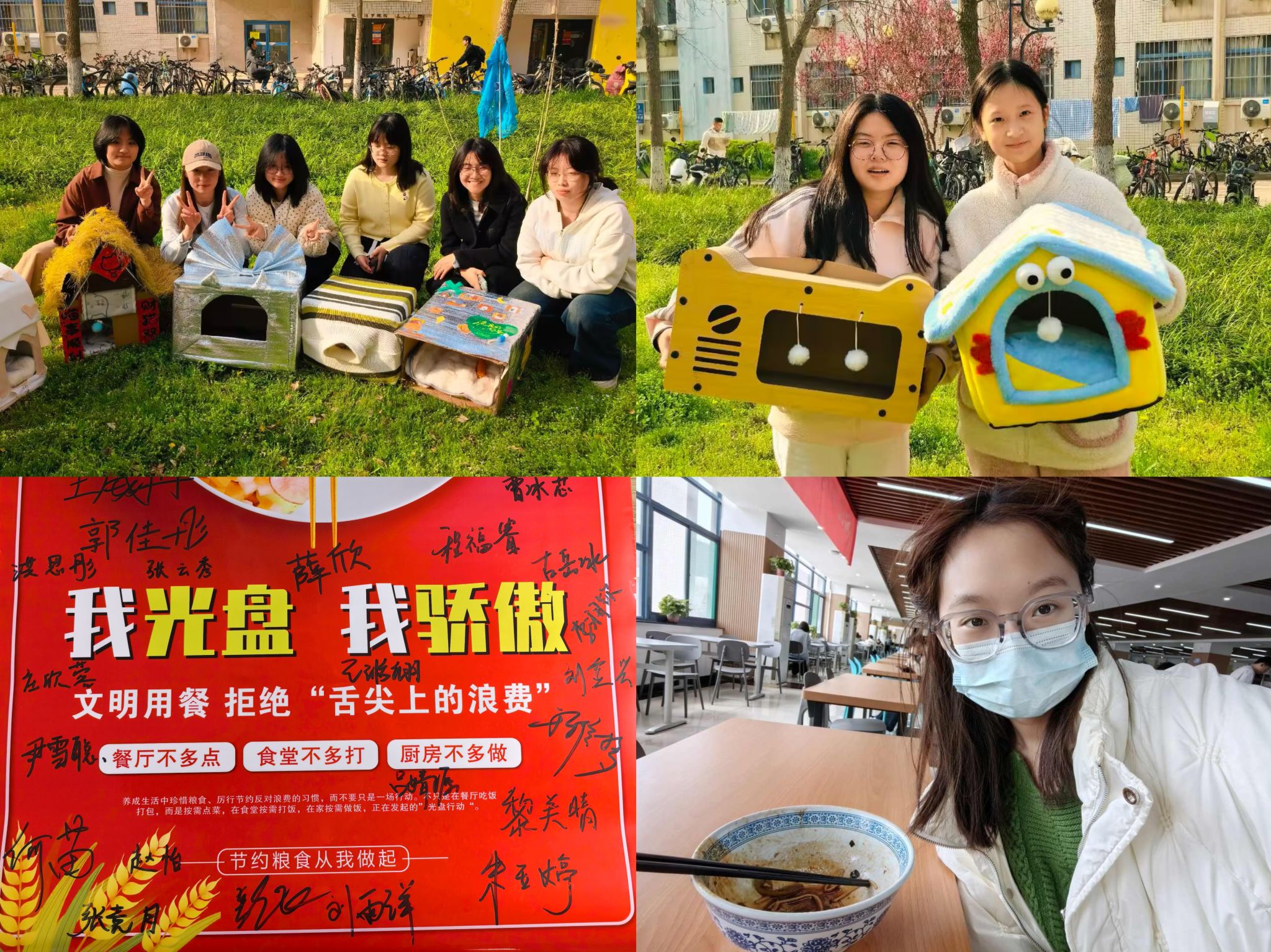 培育向善风尚,涵养勤俭美德。学院面向全院学生开展“焕新季·喵趣横生筑巢记”DIY猫窝公益活动,以创意行动关爱校园流浪动物,在动手实践中培育尊重生命、友善互助的价值理念;同步推进“赓续雷锋薪火,点亮校园‘光’盘”行动,采用线上打卡、线下倡议、激励兑换相结合的方式,将艰苦奋斗、勤俭节约的优良作风融入日常养成,强化青年尚俭自律意识。