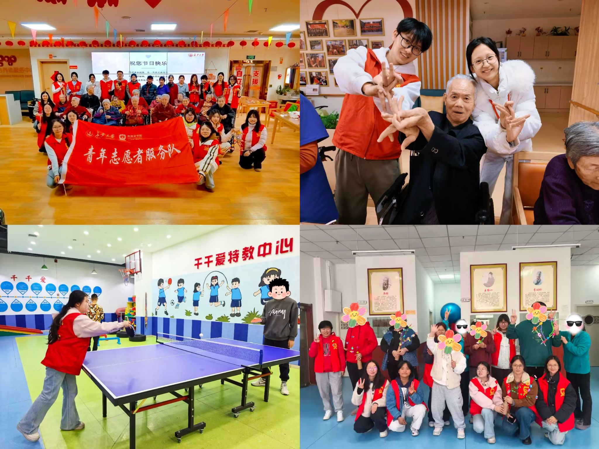 深耕爱老扶幼,践行奉献担当。学院青年志愿者服务队走进西安市未央宫街道综合养老服务中心,为老年人送去文艺表演、科普宣讲与手工互动等温情关怀,在陪伴中践行雷锋精神;组织志愿者前往莲湖区“千千爱”特殊教育培训中心,开展常态化陪伴帮扶,通过游戏互动、基础认知训练等方式助力特殊儿童成长,在扶幼实践中传递奉献力量。