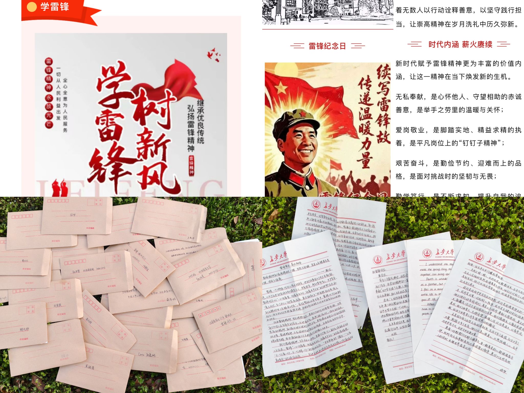 强化思想引领,构建“宣传+实践”育人体系。学院依托官方公众号发布“续写雷锋故事,传递温暖力量”雷锋纪念日专题推送,立足青年学生学习生活实际深化思想引导,为雷锋月系列活动筑牢思想根基;同步开展“笔墨校园,以信传暖”书信志愿活动,青年学子用书信致敬雷锋、感恩师长、弘扬新风,将雷锋精神内化于文艺创作之中,推动雷锋精神在校园薪火相传。