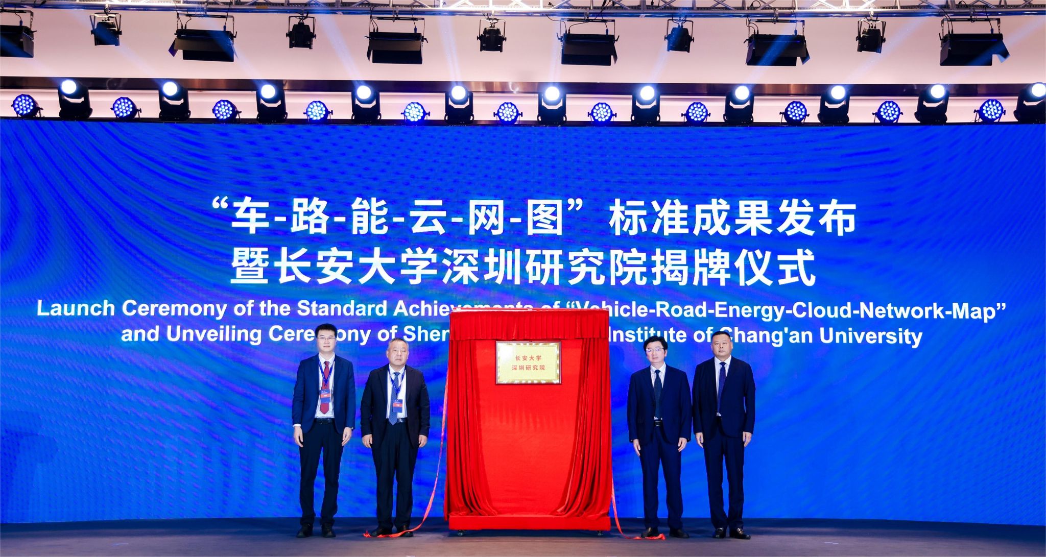 10月29日,学校应邀参加“2025世界汽车标准创新大会”,并在大会主论坛上举行“车-路-能-云-网-图”标准成果发布暨长安大学深圳研究院揭牌仪式。国家市场监管总局标准创新管理司司长肖寒,工业和信息化部装备工业一司副司长、一级巡视员郭守刚,中国汽车技术研究中心有限公司董事长安铁成,深圳市人民政府副秘书长朱武,深圳市坪山区委副书记、区长张茜,深圳市坪山区委常委、常务副区长袁虎勇,深圳市公安局交通管理局副局长王亚飞,国际标准化组织候任主席Khaled Soufi,以及来自26个国家的标准化机构负责人出席会议。我校副校长陈建勋带队参加会议。