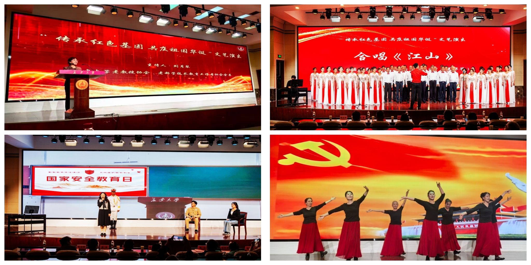 本次活动由离退休工作处主办,老科教协会、马克思主义学院及社区承办,演出节目由陕西省慈善协会志愿服务艺术总团声乐艺术团、长安大学离退休艺术团、马克思主义学院联袂打造。演出将爱国主义教育与文艺创作相结合,让红色故事“活”起来、革命精神“传”下去,既丰富了离退休职工的精神文化生活,也为广大师生搭建了学习红色历史、传承红色基因的平台。