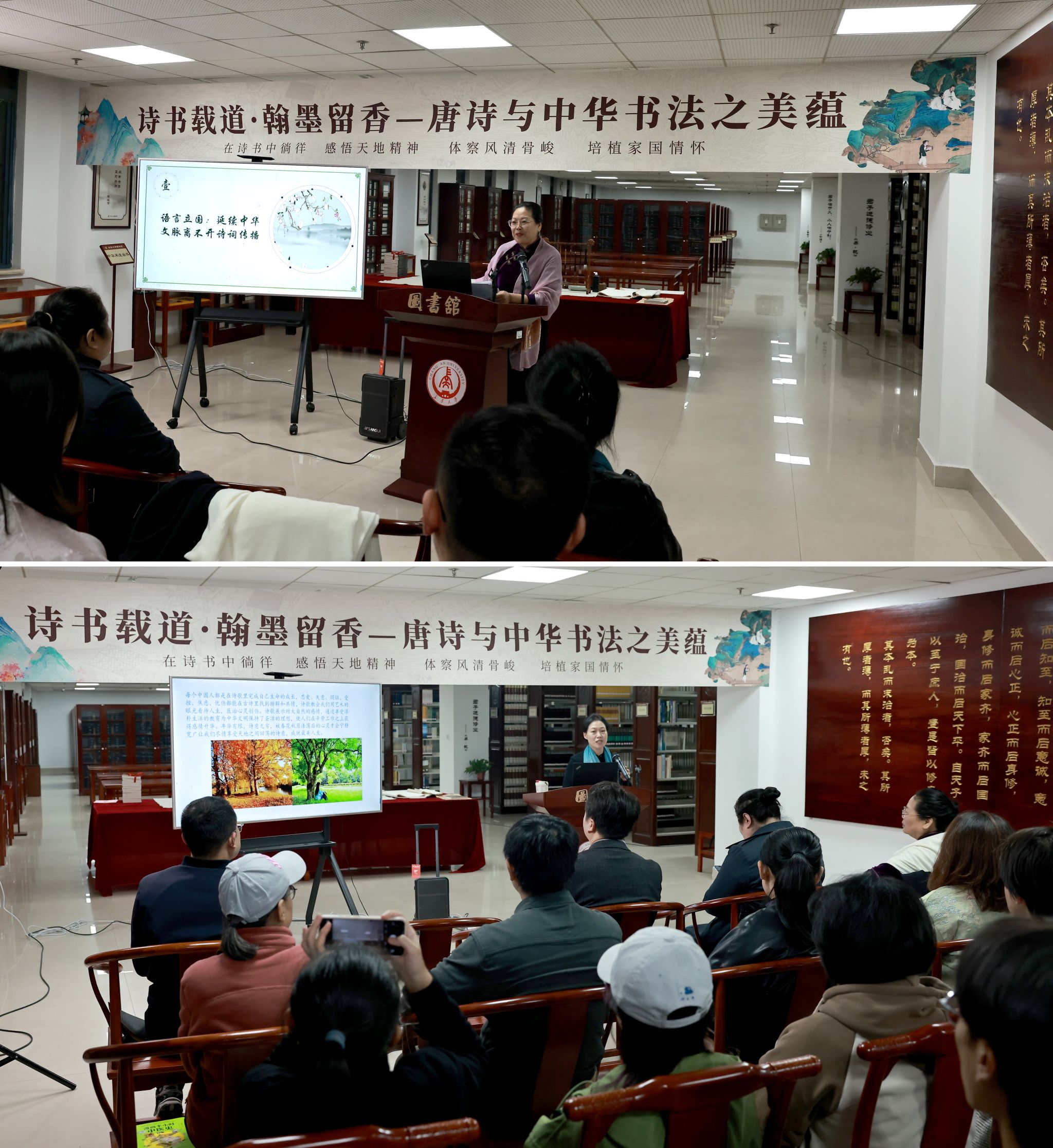 讲座以“诗书载道·翰墨留香—唐诗与中华书法之美蕴”为主题,紧扣“诗书载道”的中华文脉传统,聚焦唐诗与书法两大国粹,通过双重视角解读诗书艺术的交融,为师生打造一场精神与美学的深度对话,引导师生感悟天地精神,体察风清骨峻,培植家国情怀。
