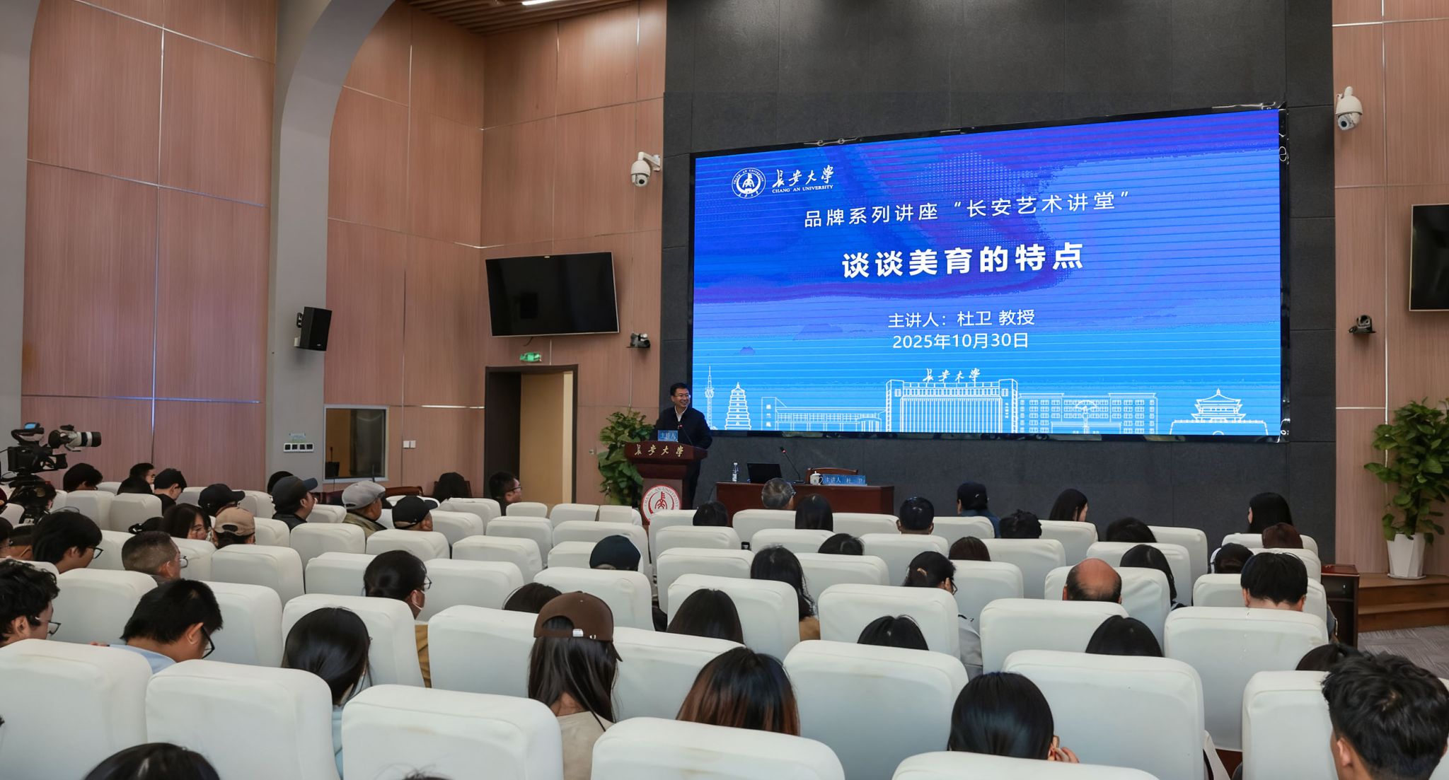 10月30日,“长安艺术讲堂”第二讲在北校区师生服务大厅二层第二报告厅举行。教育部高校美育教指委副主任委员、中华美学学会副会长、中国高教学会美育专委会理事长、原杭州师范大学校长杜卫教授作题为《谈谈美育的特点》的专题报告并向师生赠书。校党委副书记李文雄主持讲座。