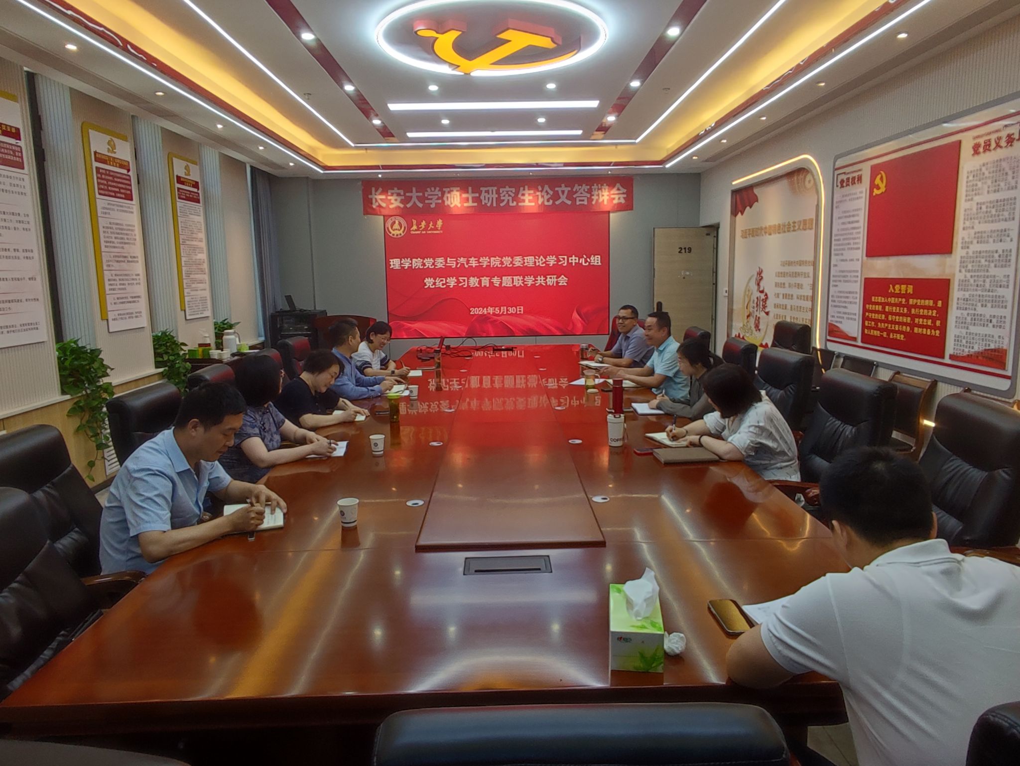 为深入开展党纪学习教育,5月30日下午,汽车学院党委与理学院党委理论学习中心组在汽车学院党建活动室开展党纪学习教育专题联学共研会。汽车学院党委书记林贵宝、党委副书记周姗姗、党委副书记崔莉、副院长牛世峰、副院长陈轶嵩,理学院党委书记闫永刚、党委副书记屈颖、副院长商泽进、副院长马建敏参加共研会。会议由林贵宝主持。