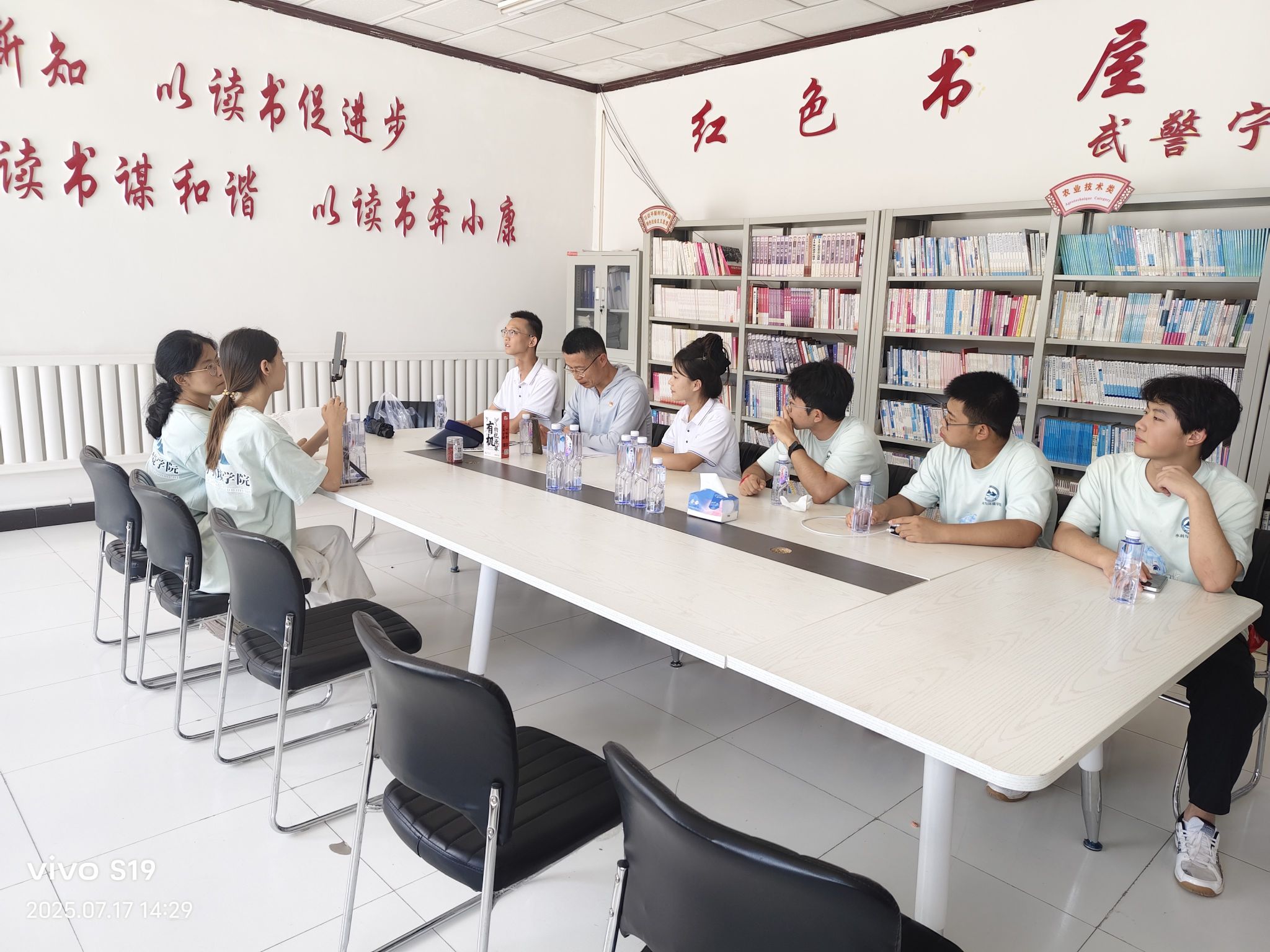 先锋领航,对话聚力谱新篇。实践队员与菊花台驻村第一书记座谈交流。马书记介绍菊花台村部的人口规模、发展现状、政策支持以及未来发展规划。实践队员邀请驻村书记一起搭建直播间。镜头前,马书记以“讲同心故事”为主线,介绍本地产品特点和乡村旅游资源,扩大产品知名度,并寄语新一代的青年学生能够积极投身参与农村工作,践行专业担当,把个人理想融入党和国家的伟大事业之中。